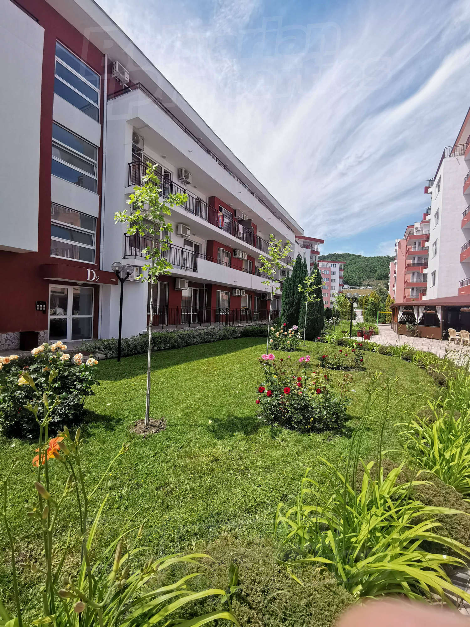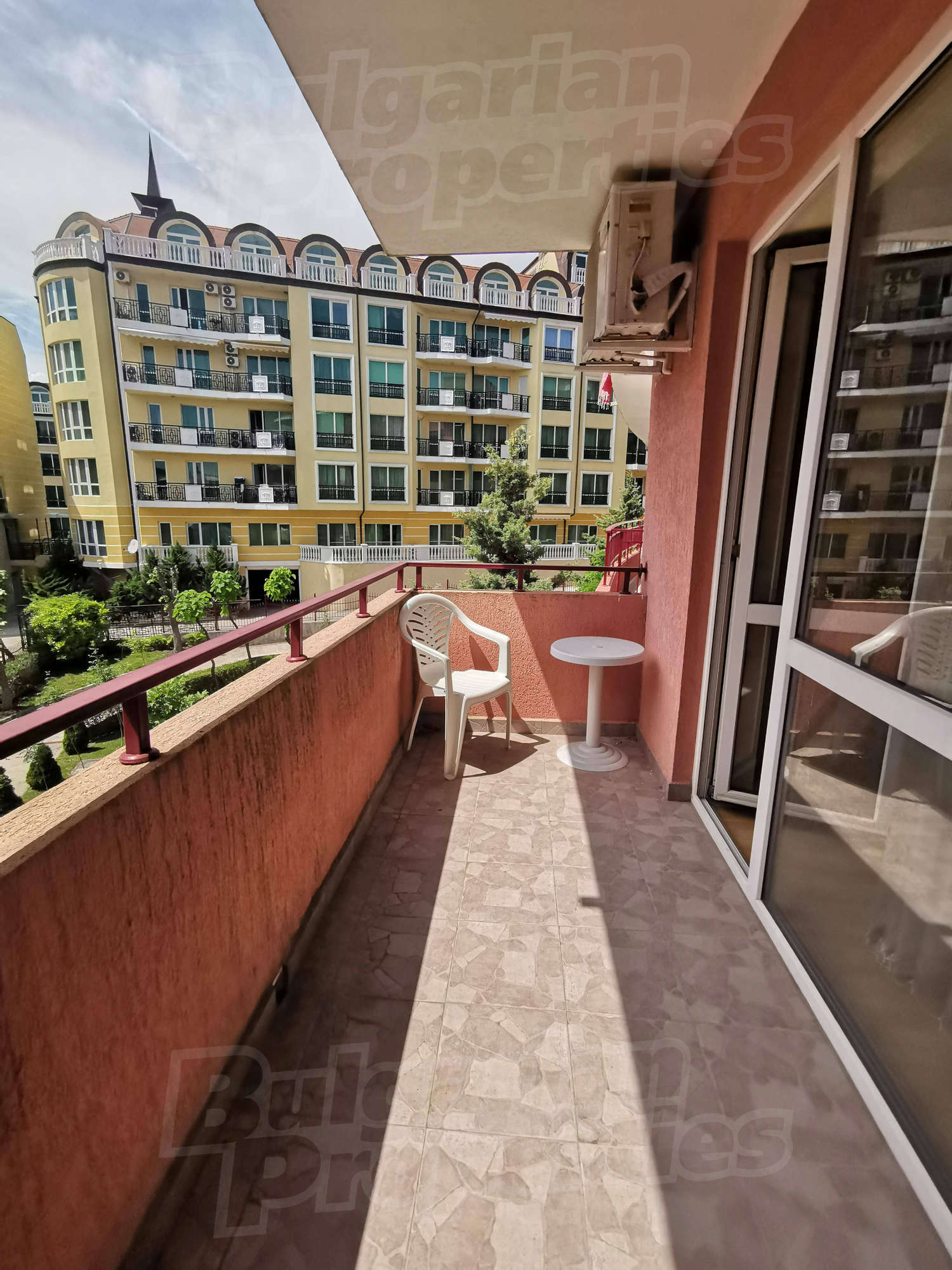 Полностью меблированная и оборудованная студия на первой линии (50 м от пляжа), в закрытом комплексе Privilege Fort Beach. Непосредственная близость к морю, аквапарку, супермаркету и автобусной остановке делает комплекс идеальным местом для отдыха в любое время года. Годовая плата за обслуживание - 12 евро за м2.