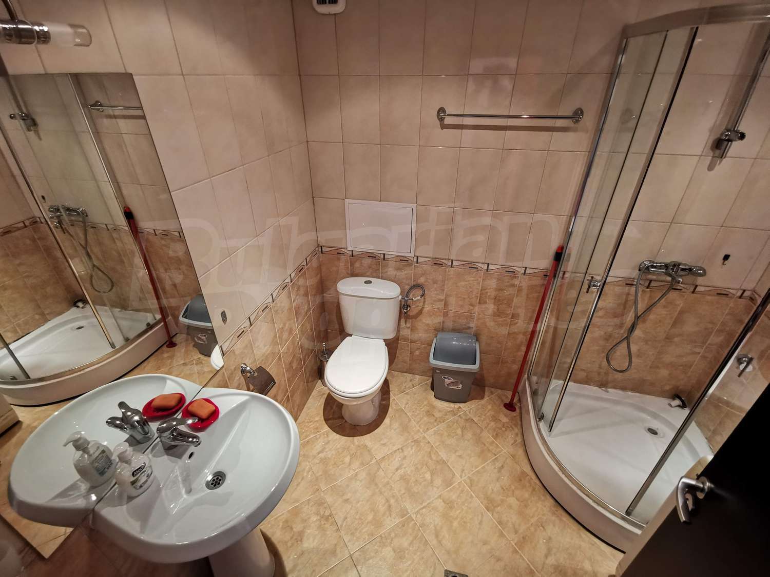 • Ванная комната с туалетом, душем, стиральной машиной и бойлером;