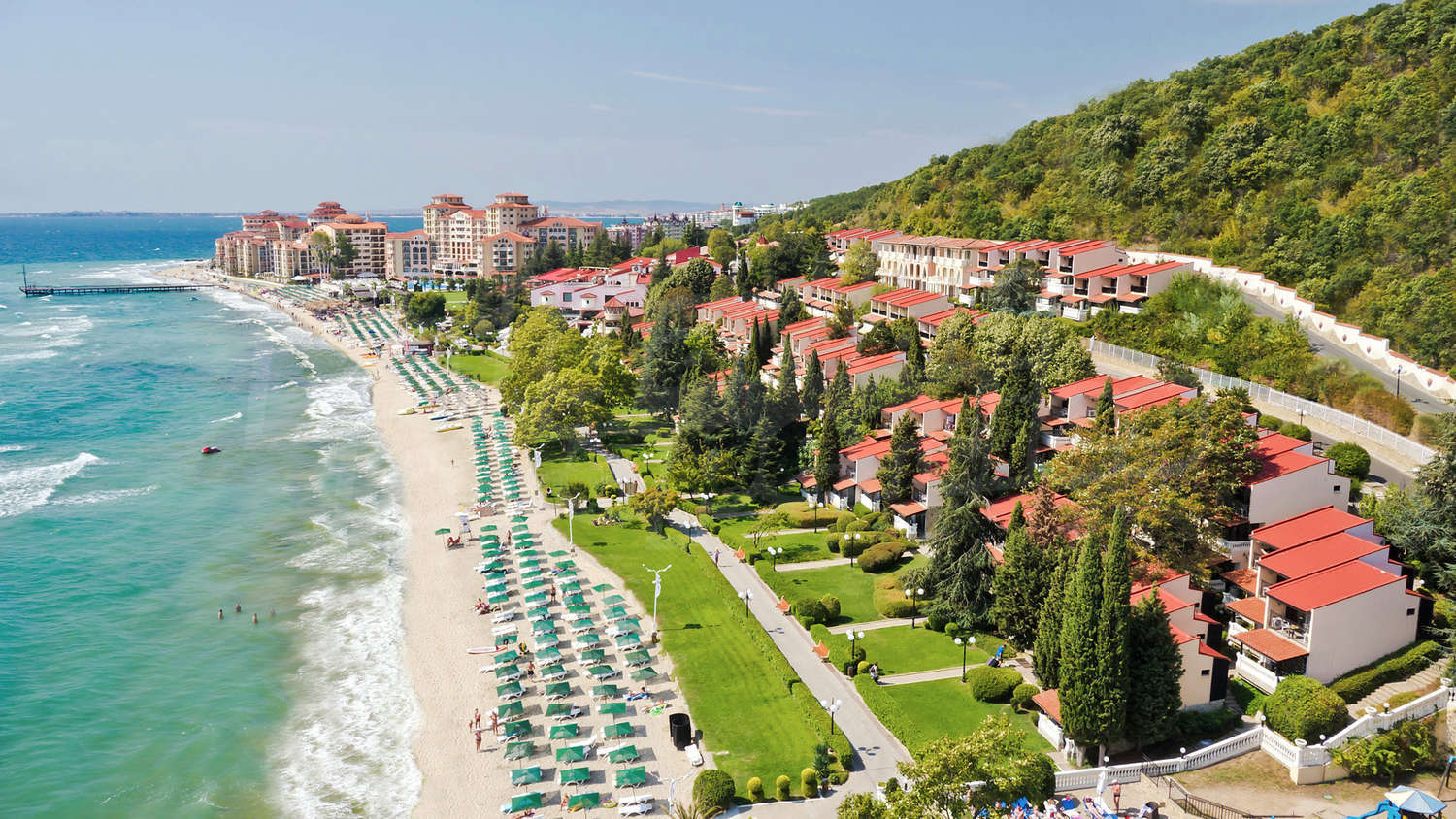 Пляж на курорте очарован кристально чистой водой. На курорте Елените есть бассейны для взрослых и детей, аттракционы, рестораны, предлагающие блюда болгарской и европейской кухни, дискотеки, анимации, бары, кафе, магазины и клубы.