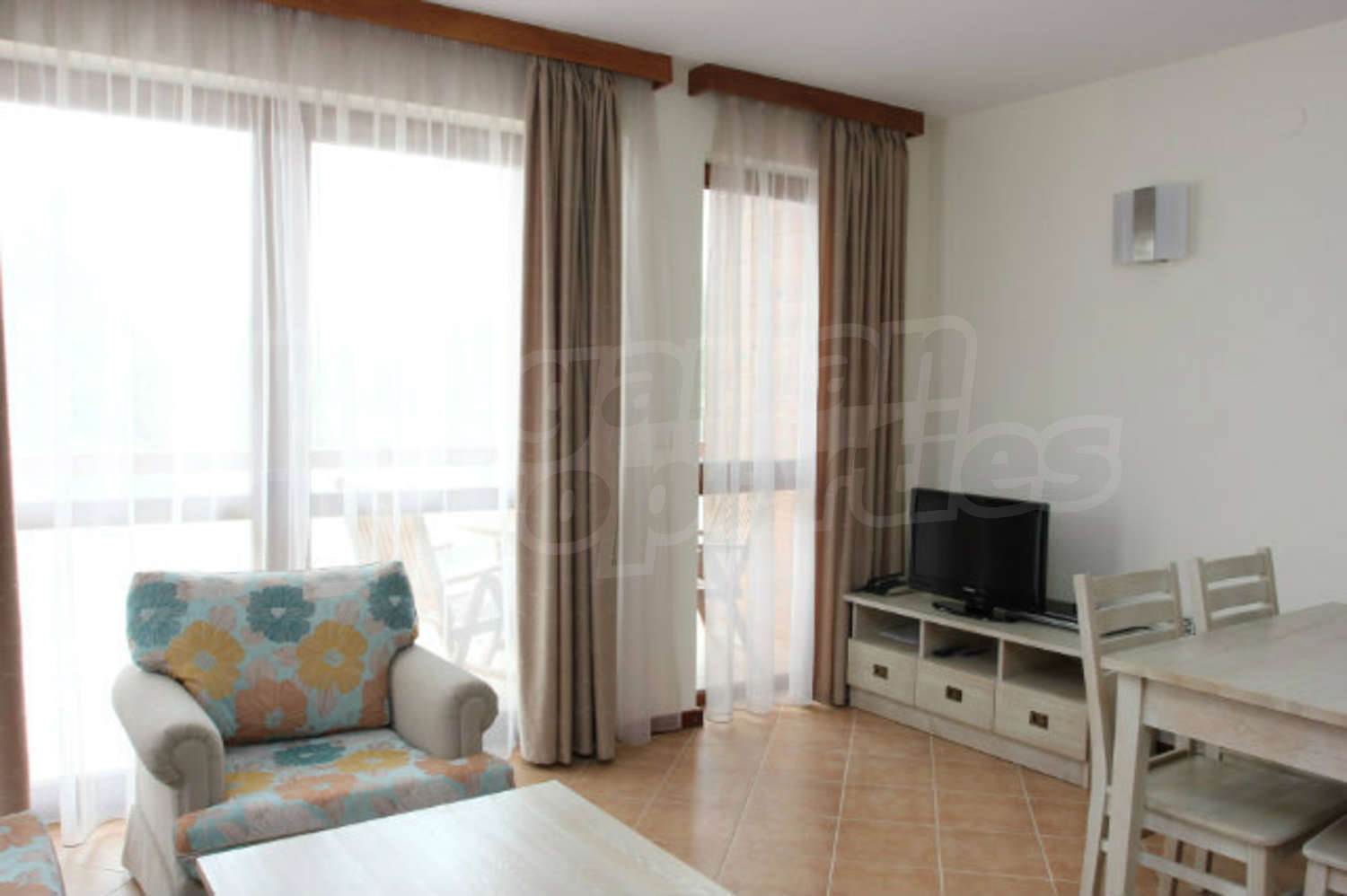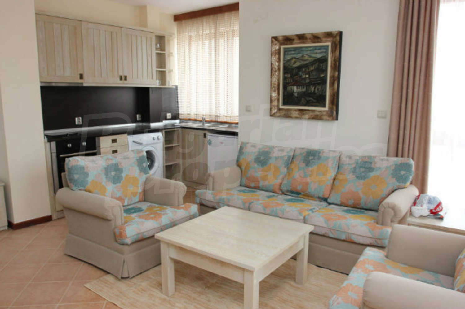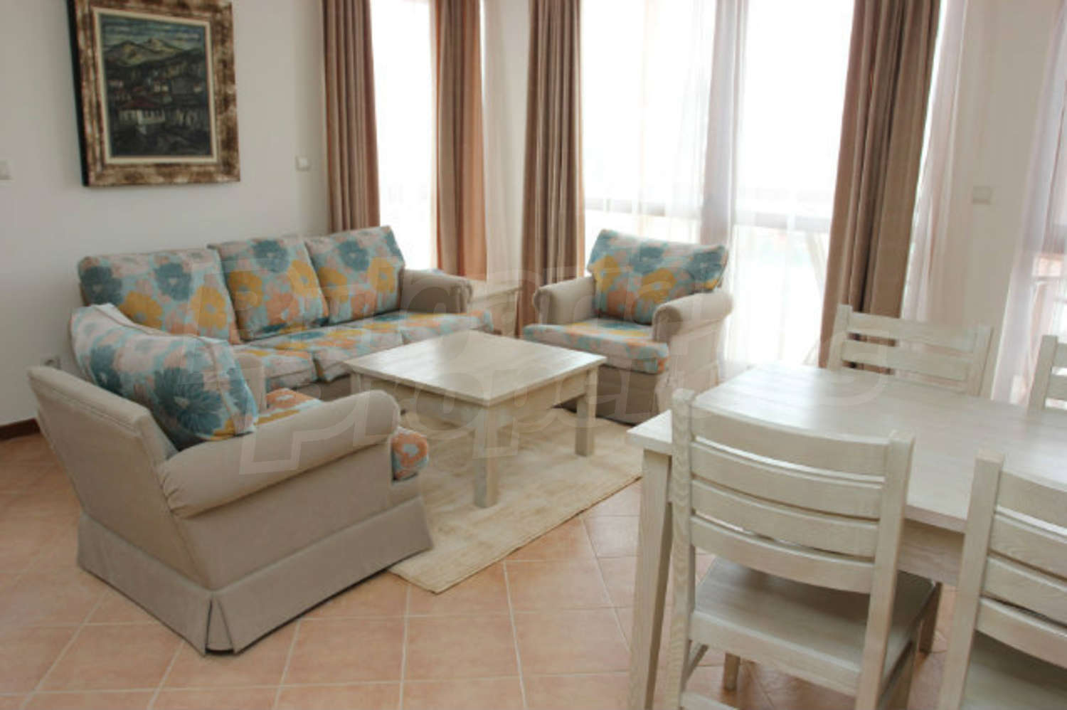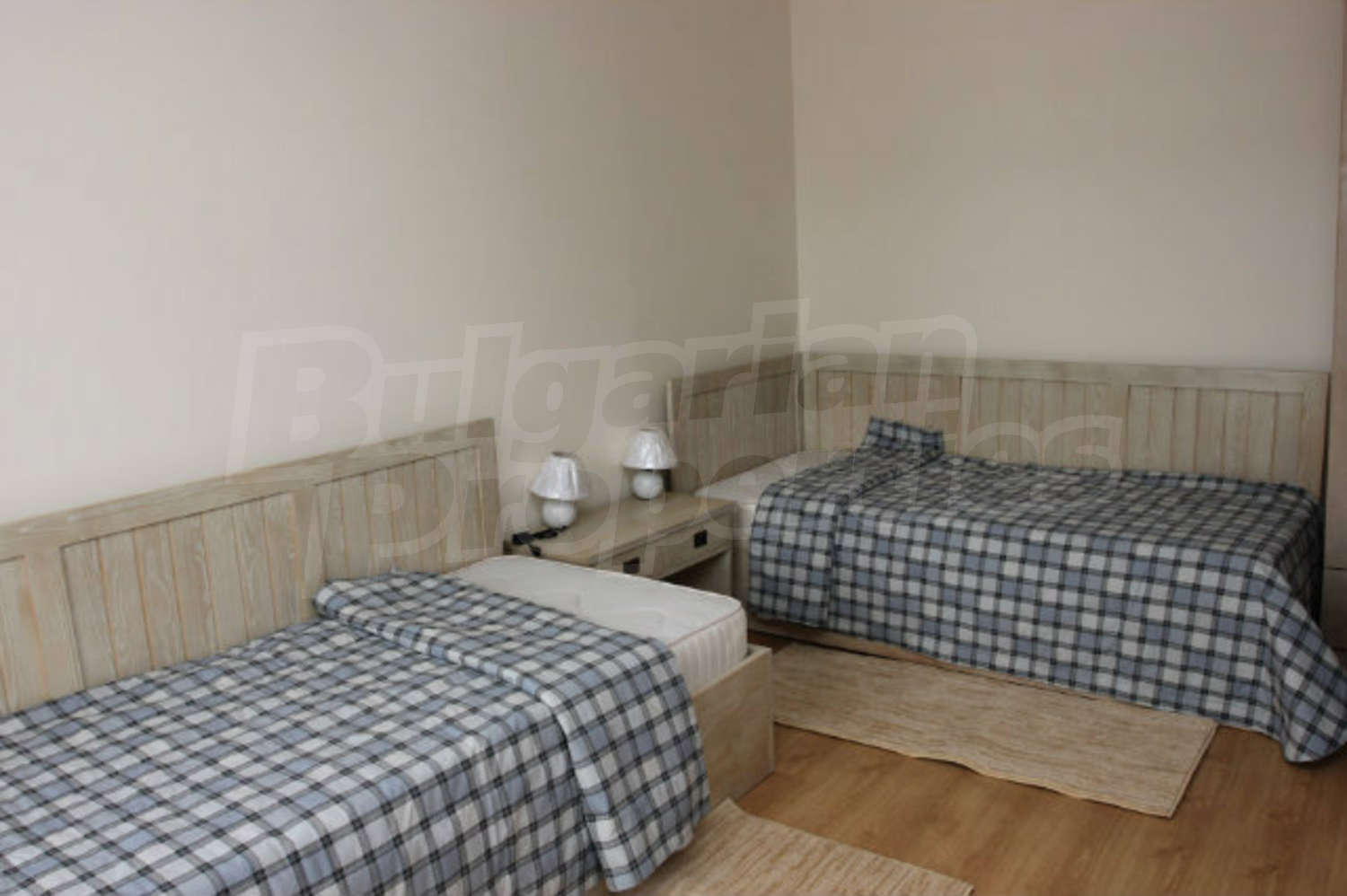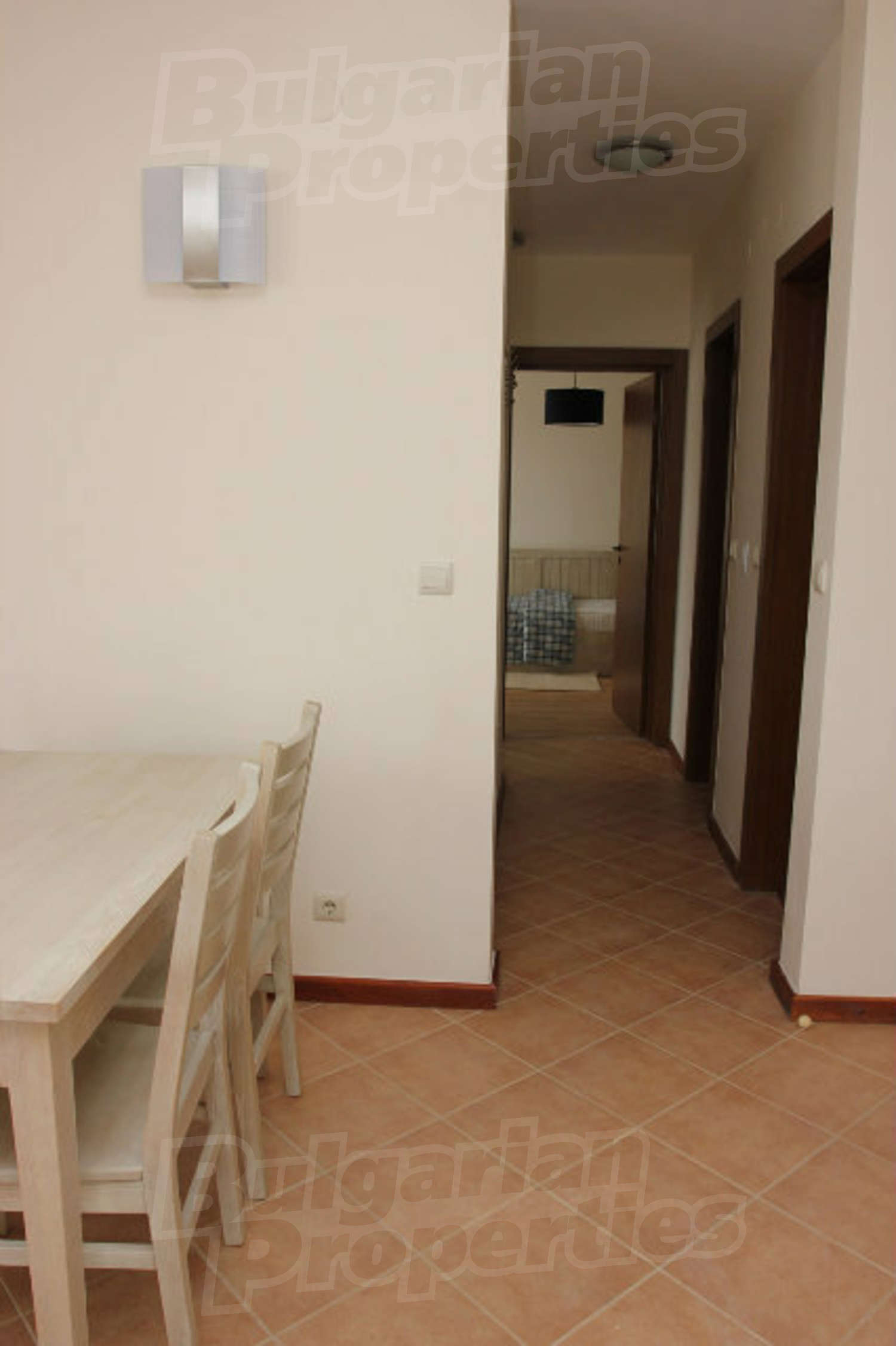 Трехкомнатная квартира площадью 91.50 кв. метров. Предлагаемая недвижимость построена в 2008. Отопление на электроконвекторах. Внешняя изоляция, ламинированный пол, окна пвх, покрашенные стены и терракотовый пол имеются в предлагаемой недвижимости. Недвижимость включает следующую мебель и оборудование: ванна, встроенная кухня, вытяжка, духовка, мебель, оборудованная ванная комната, стиральная машина, телевизор и холодильник. Из основных коммуникаций обеспечены электричество, вода, центральное водоснабжение и канализация. Балконы, ванная комната с туалетом, туалет, комплекс закрытого типа, консьерж, лифт, общие части с отделкой люкс, сауна, заасфальтированная дорога, интернет и кабельное телевидение имеются в наличии среди прочих перечисленных характеристик предлагаемого объекта, что обеспечит дополнительные удобства для пользования. Виды на гольф поле, виды на горы и виды на лес открываются с недвижимости, раскрывая часть красот живописной Болгарии.