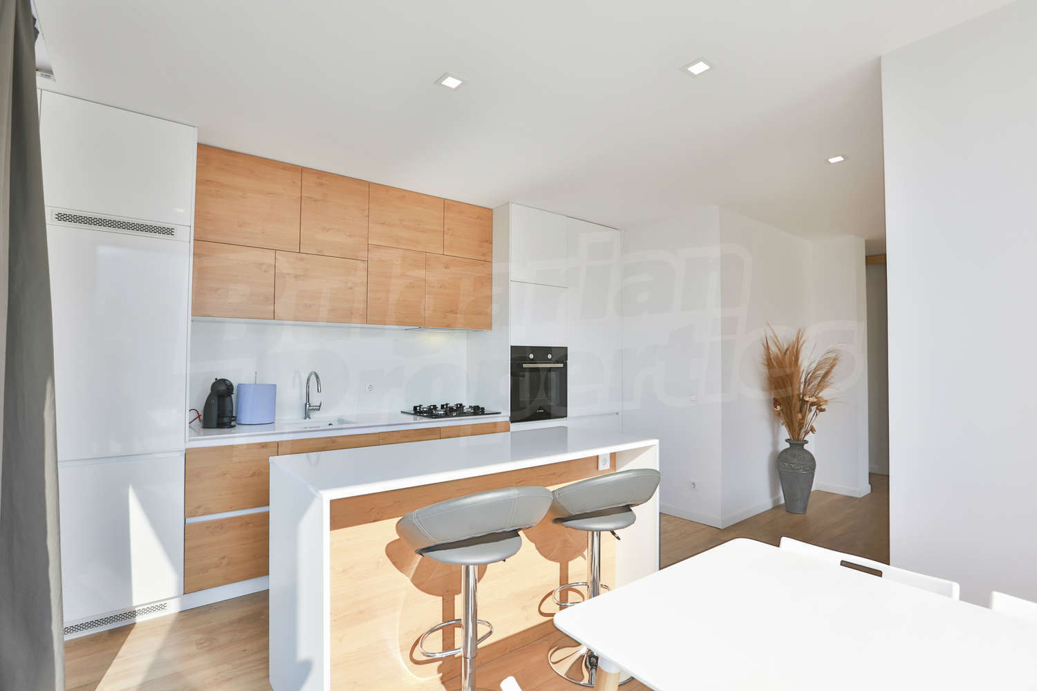 • Встроенный холодильник - AEG, встроенная посудомоечная машина AEG, духовка Bosch, газовая плита Bosch, вытяжка AEG, стиральная машина Bosch, сушилка Bosch, микроволновая печь Gorenje