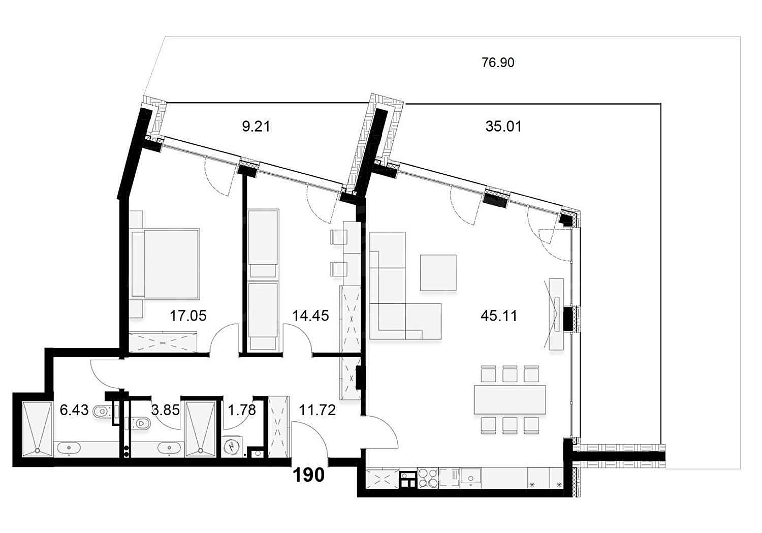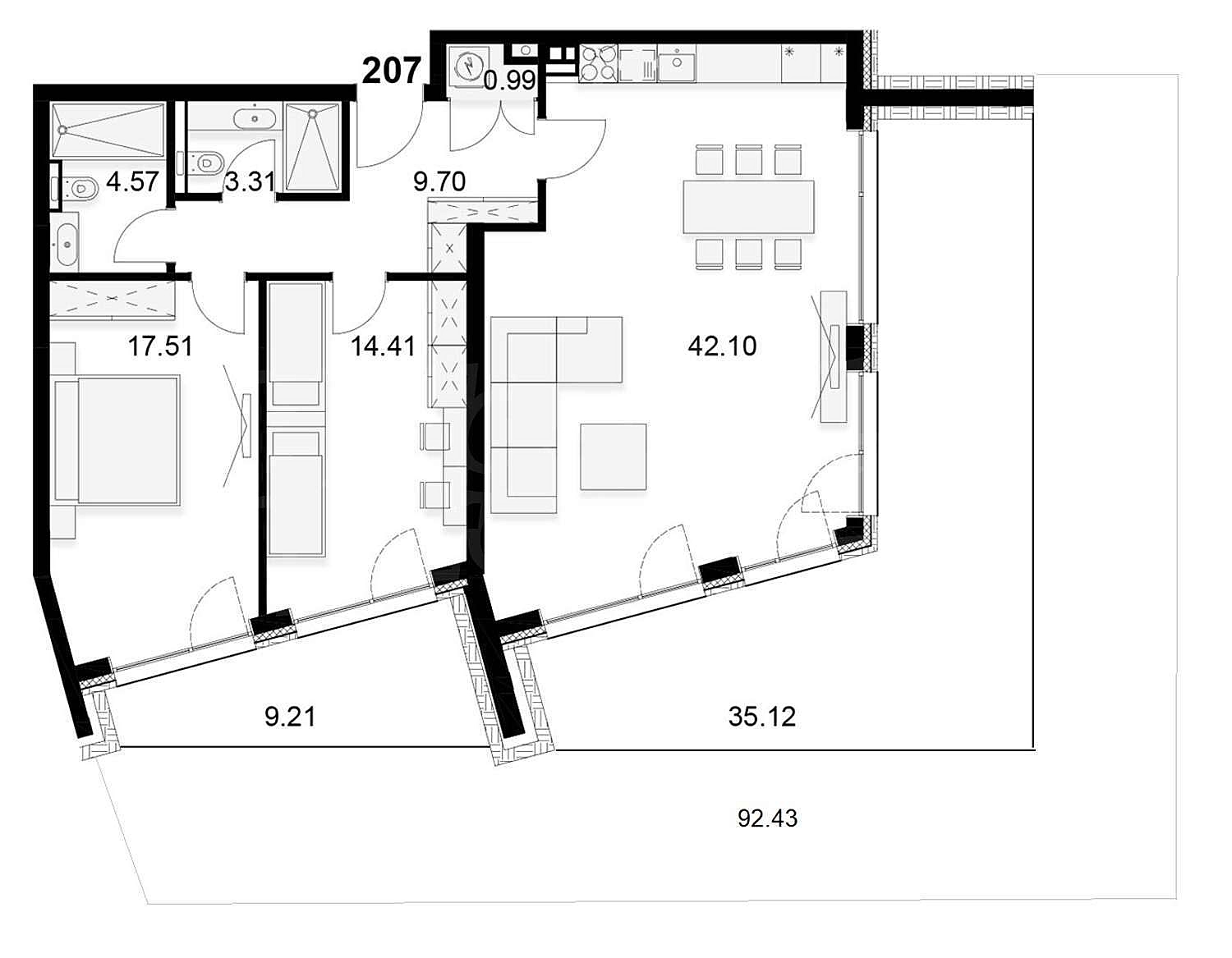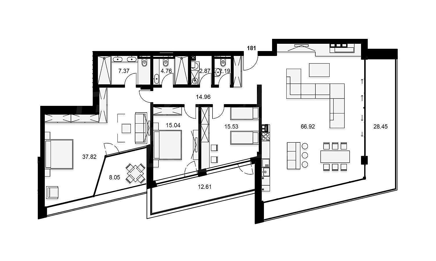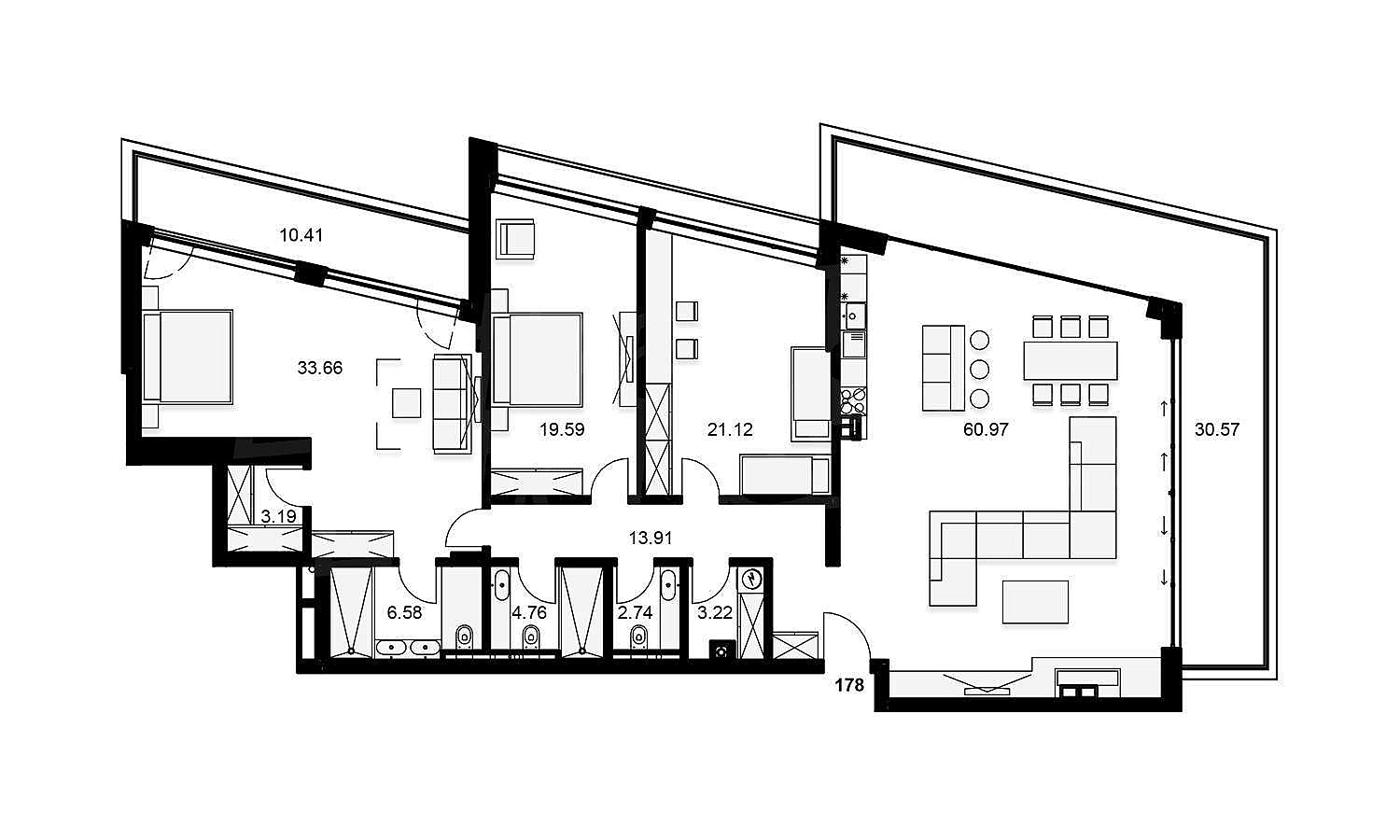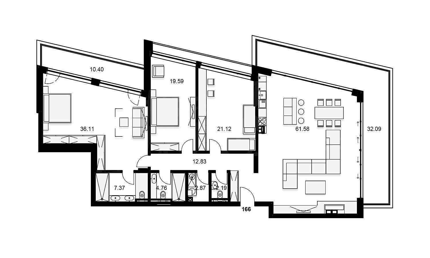 • 256 квартир с тремя, двумя и одной спальней