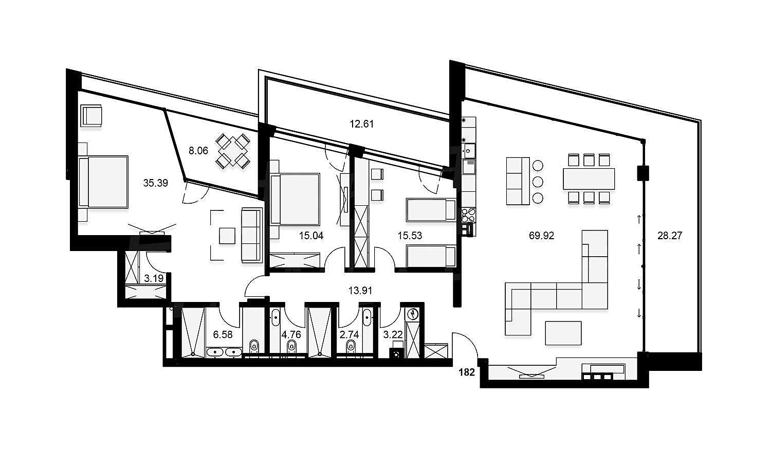 Квартиры-студии, Двухкомнатные квартиры, Трёхкомнатные квартиры, Четырехкомнатные квартиры, Многокомнатные квартиры, Дома