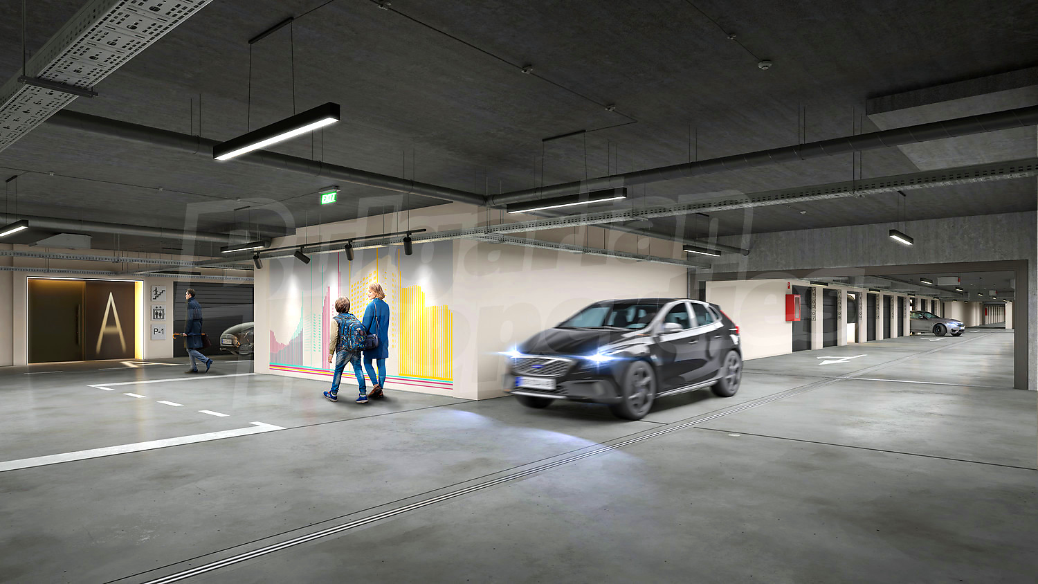 Спроектированные по самым высоким стандартам 872 квартиры с оптимальной функциональной планировкой, предоставляющей в будущем возможности для свободной и адаптируемой схемы планировки, а также около 30 торговых точек различного масштаба коммуникативно поддерживаются почти 1 000 парковочных мест, распределенных в удобных подземных гаражах. Более 300 мест для парковки велосипедов создают современные альтернативные варианты передвижения.