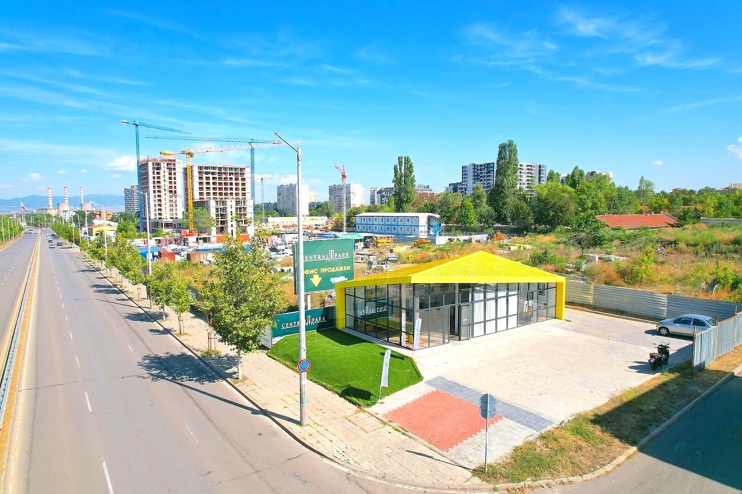 Низкая интенсивность застройки окружающей городской среды, захватывающие виды на гору Витоша и близость к основным городским паркам, а также сбалансированные возможности общественного обслуживания, расположенные на периферии, вдохновили дизайнеров AZ+Partners Ltd. на реализацию концепции комплекса, превратив простое градостроительное решение по североамериканским и западноевропейским образцам в "оазис спокойствия", не случайно назвав его Central Park.