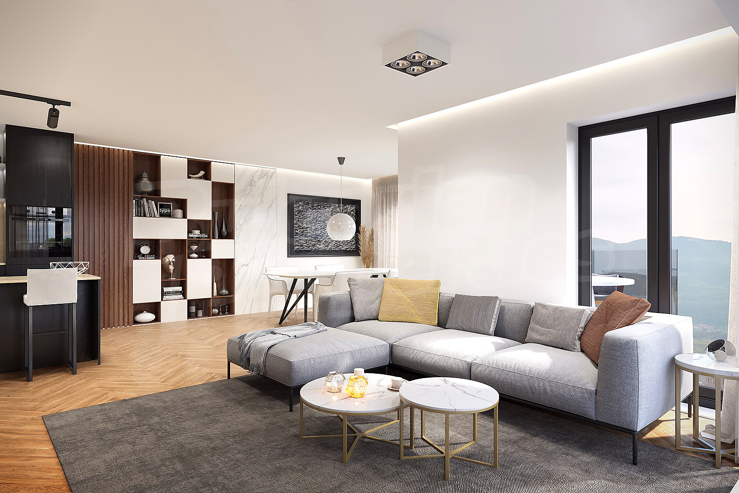 Лучшее расположение с видом на гору Витоша и быстрый доступ к удобному транспорту, спортивным центрам, торговому центру, больницам, паркам, школам и многому другому. В здании 11 этажей с уникальными квартирами 3 типов - с одной спальней, двумя спальнями и четырьмя спальнями.