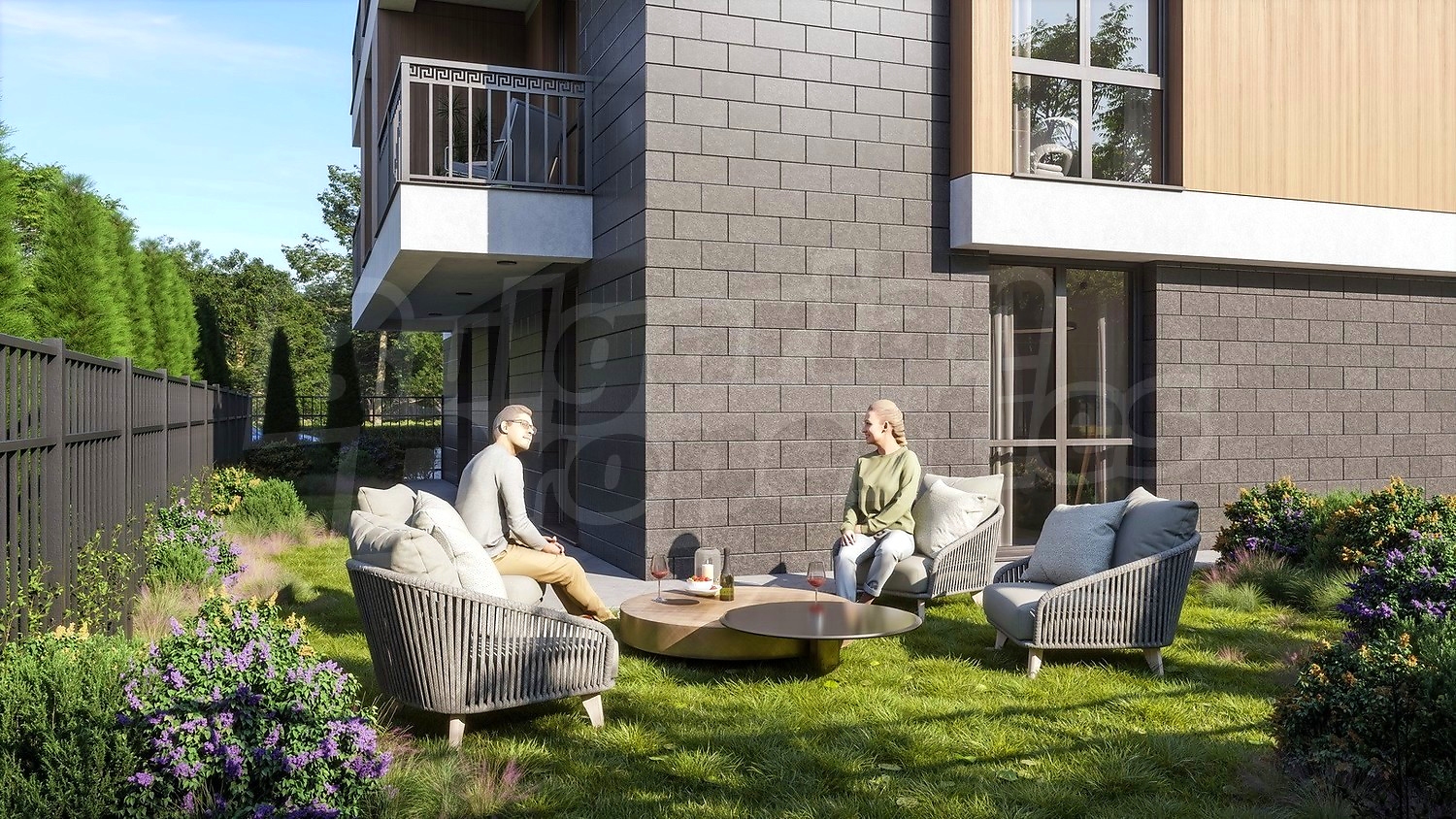 • Фасады - натуральный камень и структурная штукатурка, уложенные на систему теплоизоляции, согласно архитектурному проекту