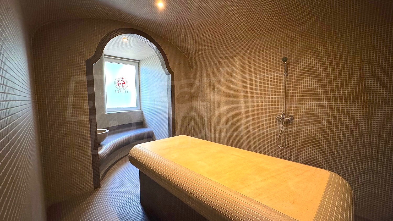 В комплексе есть современный спа-центр, расположенный на первом этаже. К услугам гостей две сауны (финская и травяная), большая паровая баня, турецкая баня (хаммам), комната джакузи, просторная и уютная зона отдыха, а также массажная зона с двумя отдельными массажными кабинетами.