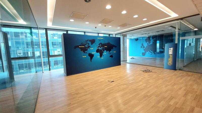 Офис площадью 1150 кв. метров. Отопление кондиционером. Обеспечено кондиционирование следующего типа: центральная система кондиционеров. Алюминиевые окна, подвесной потолок и покрашенные стены имеются в предлагаемой недвижимости. Из основных коммуникаций обеспечены центральное