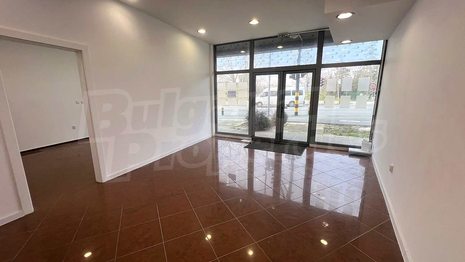 Большие витринные окна обеспечивают хорошую видимость и естественное освещение.