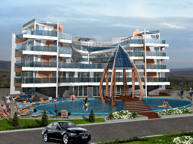 Проект включает и бизнес центр с конференц-залом 68 человек. Сам комплекс предлагает разнообразный выбор апартаментов: от квартир-студий до четырехкомнатных, расположенных в трех отдельных корпусах, а так же бар под открытым небом, крытый спортивный центр и современный салон красоты.
