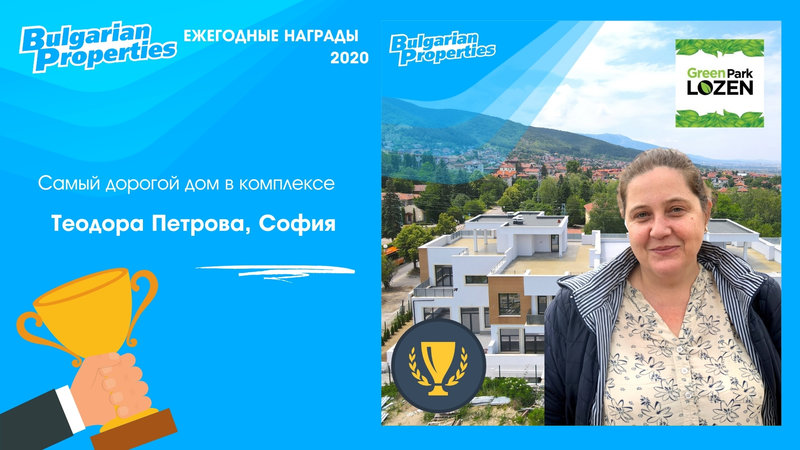 • Невена Георгиева получил награду за общий вклад в обслуживание реализованных сделок в наших эксклюзивных комплексах.