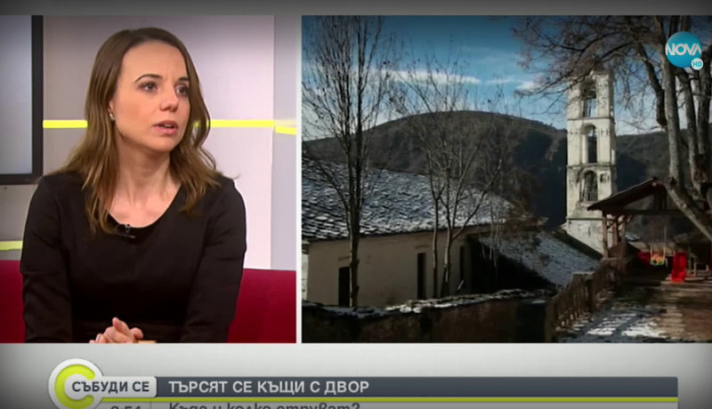 В связи с темой на центральном болгарском телеканале NOVA о повышенном интересе к покупке домов в деревне и курортных квартир для проживания ближе к природе, исполнительный директор BULGARIAN PROPERTIES Полина Стойкова MRICS стала гостьей шоу «Събуди се». с ведущей Мартиной Ганчевой.