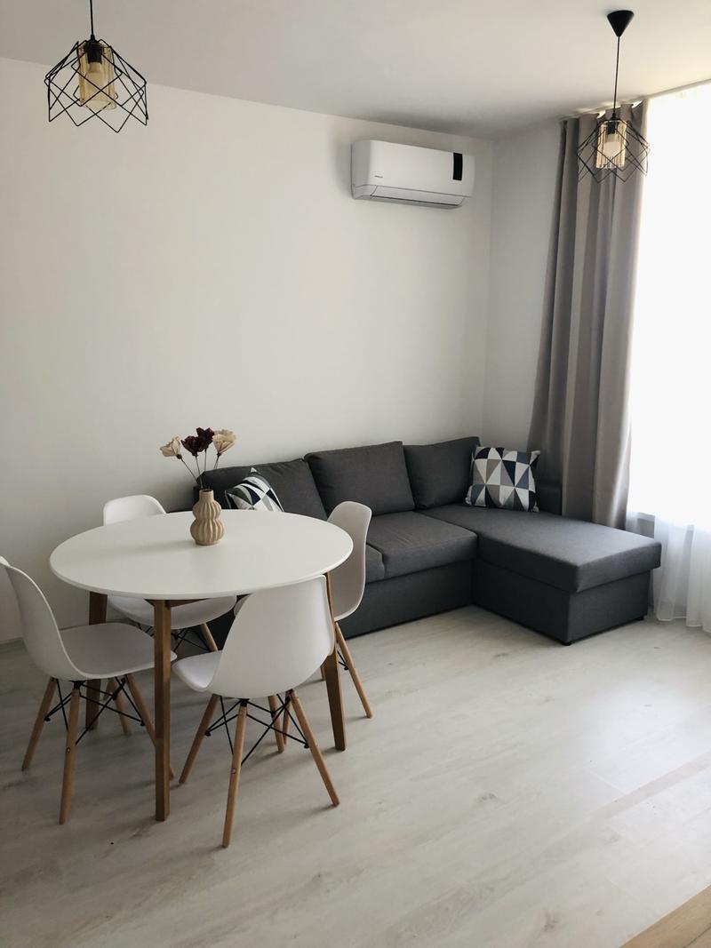 Предлагаем в аренду отлично ухоженную двухкомнатную квартиру площадью 70 кв.м, расположенную в закрытом комплексе в районе Взраждане. Жилье находится на 4-м этаже в современном одиннадцатиэтажном кирпичном здании, построенном в 2020 году, с лифтом и ухоженными общими частями.