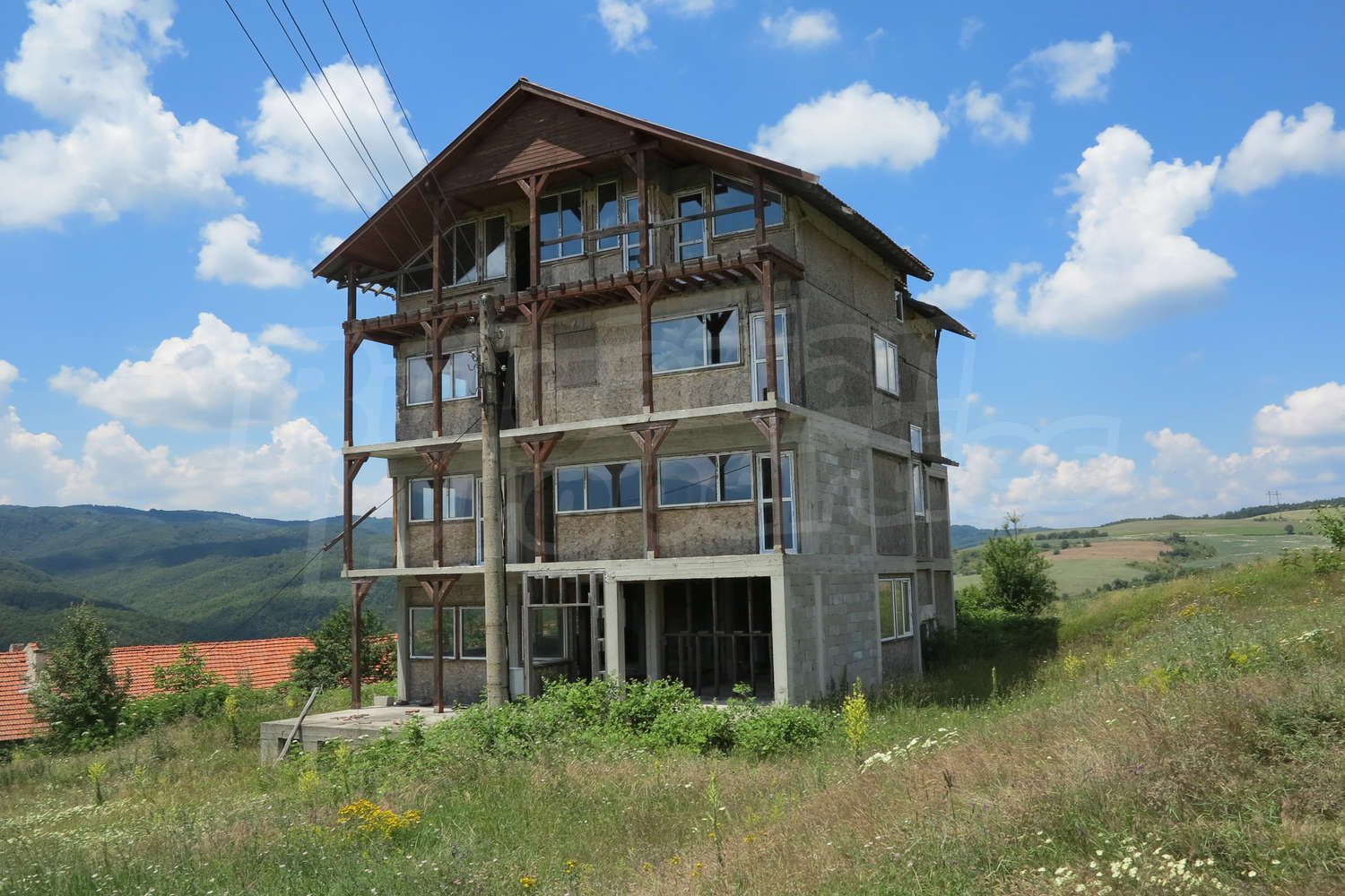 Гостиница, Отель площадью 606.35 м2. Окна пвх имеются в предлагаемой недвижимости. Из основных коммуникаций обеспечены электричество и вода. Ванная комната с туалетом, кладовая и подвал имеются в наличии среди прочих характеристик предлагаемого объекта, что обеспечит дополнительные удобства для пользования. Виды на горы и виды на село открываются с недвижимости, раскрывая часть красот живописной Болгарии.