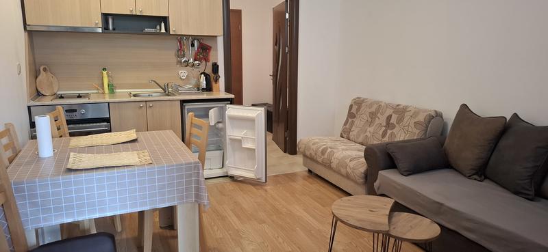 Уютное студио, переоборудованное в однокомнатную квартиру с панорамным видом на горы Пирин Вблизи г. Банско Квартира в комплексе с парковкой и открытым бассейном Предлагаем в аренду просторную студию, переделанную в двухкомнатную квартиру, расположенную в тихом и благоустроенном районе у подножия горы Пирин. Квартира предлагает комфорт, спокойствие и функциональную меблировку в сочетании с прекрасным панорамным видом - идеальное решение