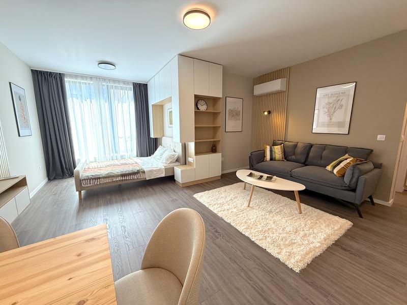 Меблированная студия в престижном здании Мона 3 г. София , кв. «Манастирски Ливади» Отличная квартира, выходящая окнами на восток в хорошем столичном районе Представляем вам изысканную, полностью меблированную студию с восточной ориентацией, расположенную в одном из самых предпочтительных зданий района — «Мона 3». Недвижимость находится в сердце квартала