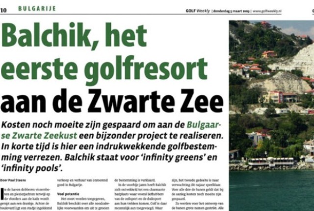 "Балчик – первый гольф курорт на Черном море" является заголовком обширной статьи в специализированным голландском издании Golf Weekly.