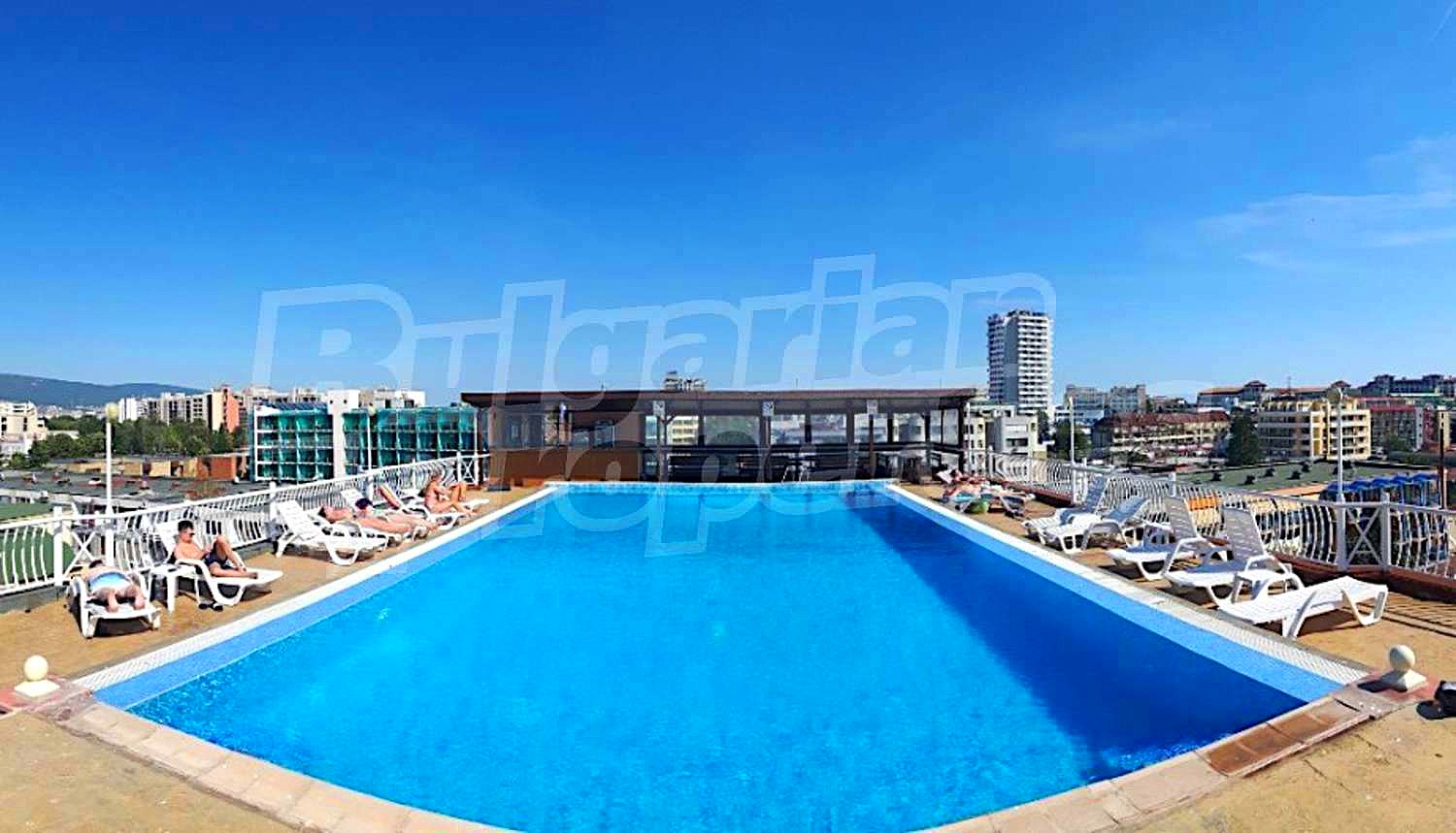 Трехкомнатная квартира площадью 90.26 кв.м. Предлагаемая недвижимость построена в 2007. Отопление кондиционером. Обеспечено кондиционирование следующего типа: инвенторные кондиционеры. Армированная входная дверь, двойной стеклопакет, ламинированный пол, окна пвх и стены покрашенные латексной краской имеются в предлагаемой недвижимости. Недвижимость включает следующую мебель и оснащение: бойлер электрический, ванна, кондиционер, стиральная машина, телевизор и холодильник. Из основных коммуникаций обеспечены электричество, вода и канализация. Ванная комната с туалетом, внутренний туалет, обозначенная стоянка, терраса, бассейн, лифт, интернет Wi-Fi и спутниковое тв имеются в наличии среди прочих отличительных характеристик предлагаемого объекта, что обеспечит дополнительный комфорт для пользования. Виды на внутренний двор открываются с недвижимости, раскрывая часть красот живописной Болгарии.