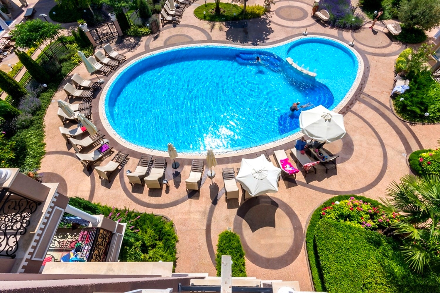 Представляем на продажу просторную дизайнерскую трехкомнатную квартиру с панорамным видом на бассейн в бутик-комплексе "Isis Palace", расположенном в тихой и спокойной части курорта Солнечный берег, рядом с аквапарком и в 10-15 минутах ходьбы от пляжа.