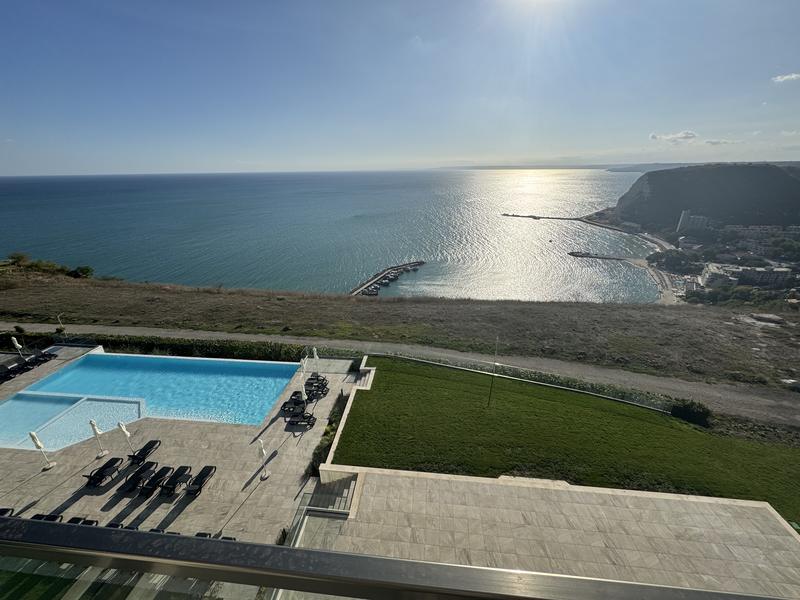 Выберите свой новый панорамный дом с парковочным местом, включенным в цену, в новом жилом доме с Актом 16, построенном в курортной зоне Каварны, на высоком берегу Черного моря, всего в 1 км от пляжа, в 5 минутах от центра города, в 12 минутах от всемирно известных полей для